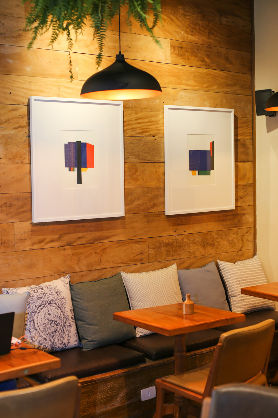 Apesar da abertura com festa que incluiu shows, cantorias e até um strip-tease, como uma prévia do que será o conceito do lugar, o café é elegante, tem peças garimpadas em antiquários, como o lustre francês. Tem uma jabuticabeira cercada por uma mesa e cadeiras. Mais um jeito de galeria de arte, com obras do Eduardo Sued. E um painel lindo atrás de um sofá chesterfield.
