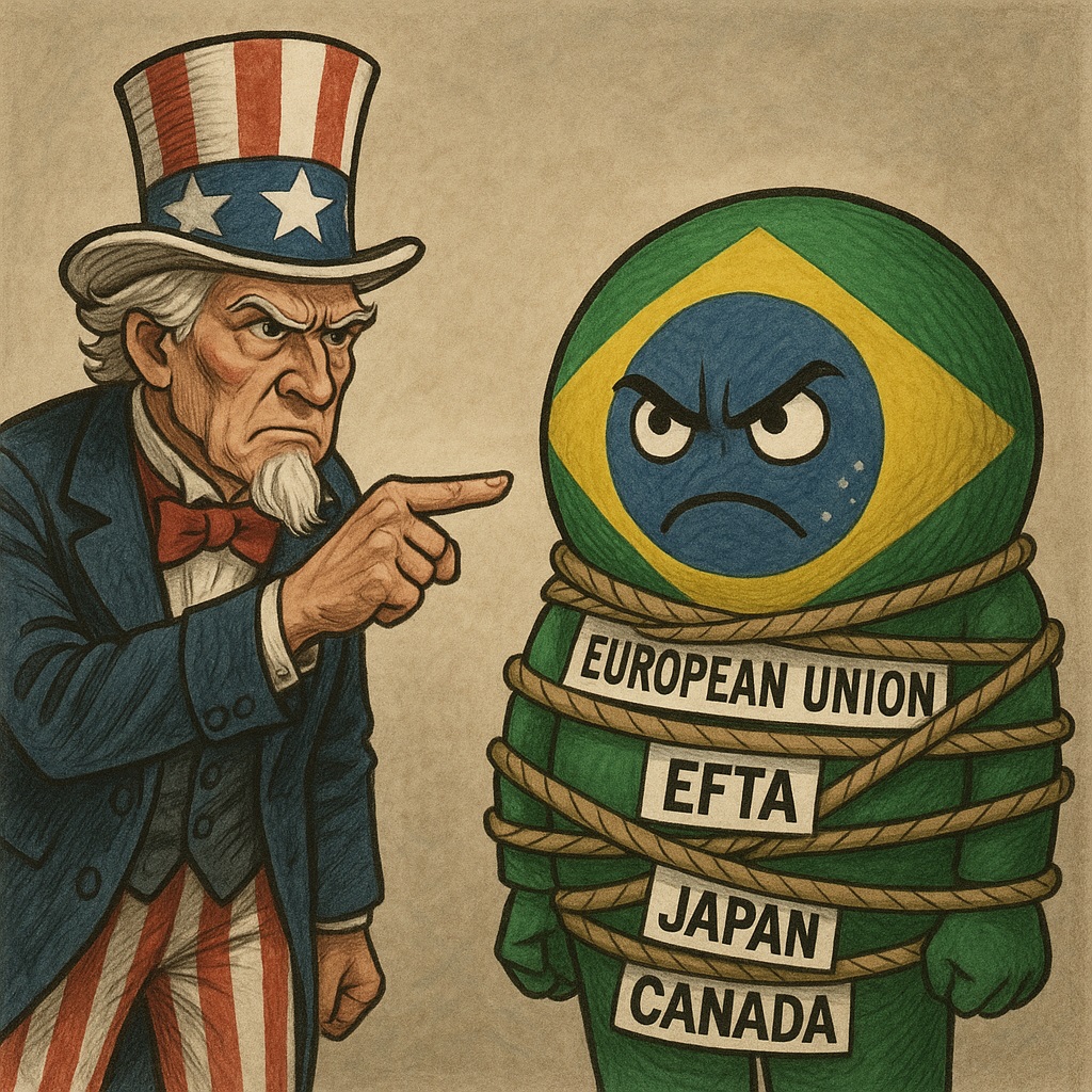 Como fica o Brasil? Desde fins do séc. XIX, a maior ameaça externa à realização do potencial brasileiro tem sido os EUA. De uma maneira ou de outra, temos tido nossa ação constrangida pelo controle que os norte-americanos exercem sobre a maior parte do Hemisfério Ocidental. É novo, no entanto, o tipo de ataque ora perpetrado por Trump contra o governo do Brasil.