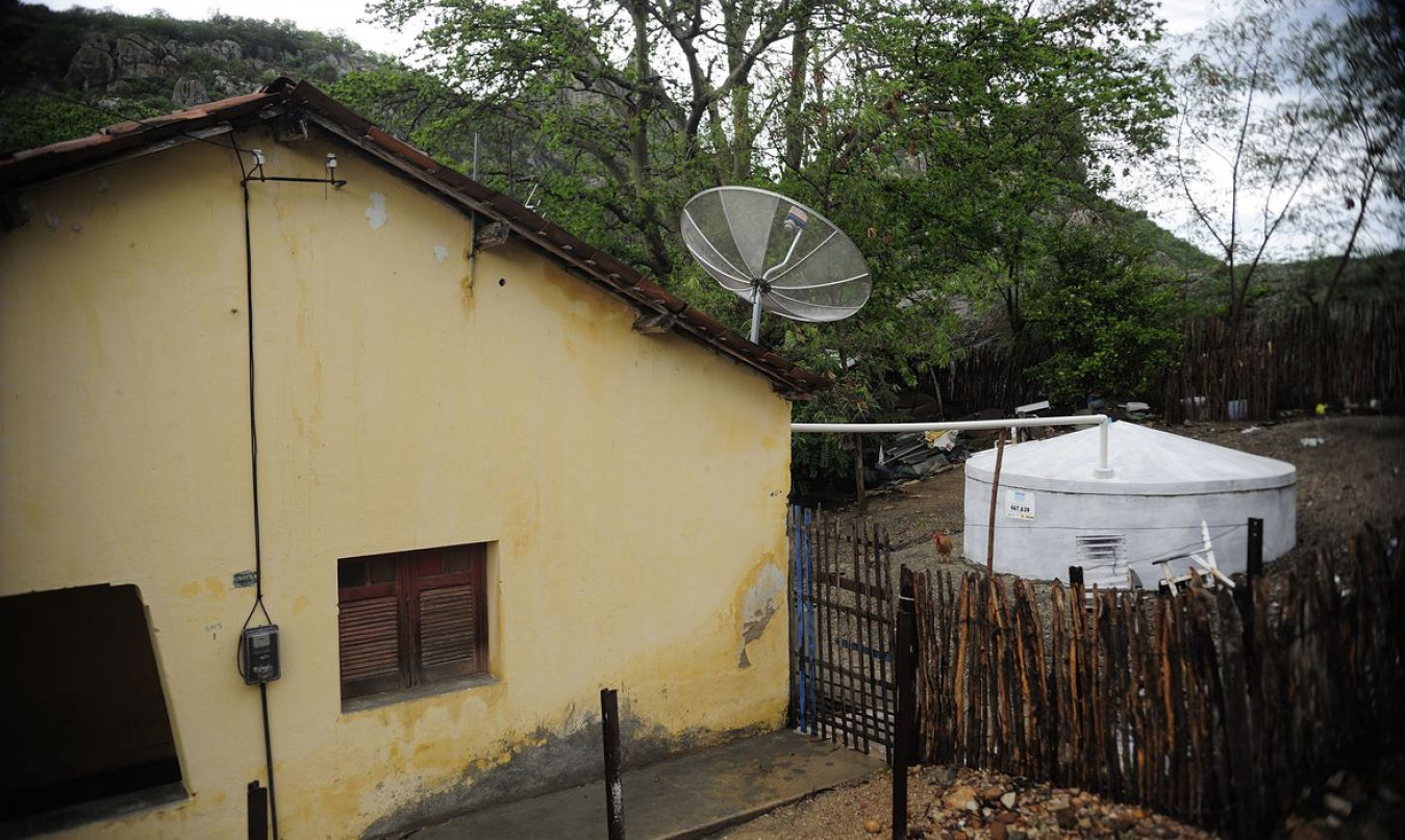 Cisterna para captação e armazenamento de água da chuva em uma casa ao lado do Açude do Cedro, que começou a ser construído no Império e hoje não abastece mais a cidade Fernando Frazão/Agência Brasil