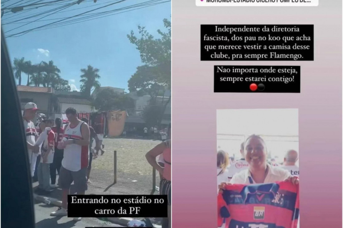 Em outro story, Marcelle faz um gesto obsceno no meio da torcida do São Paulo. Depois, ela segura uma camisa do Flamengo e critica a diretoria: "Independente da diretoria fascista, dos pau no koo (sic) que acha que merece vestir a camisa desse clube, pra sempre Flamengo".