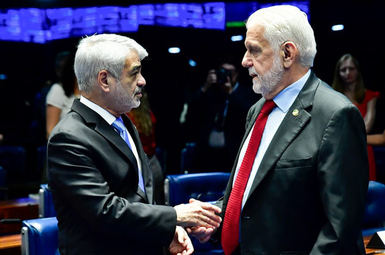Humberto Costa, à esquerda, e Jaques Wagner após a votação do projeto no Plenário do Senado Foto: Geraldo Magela/Agência Senado