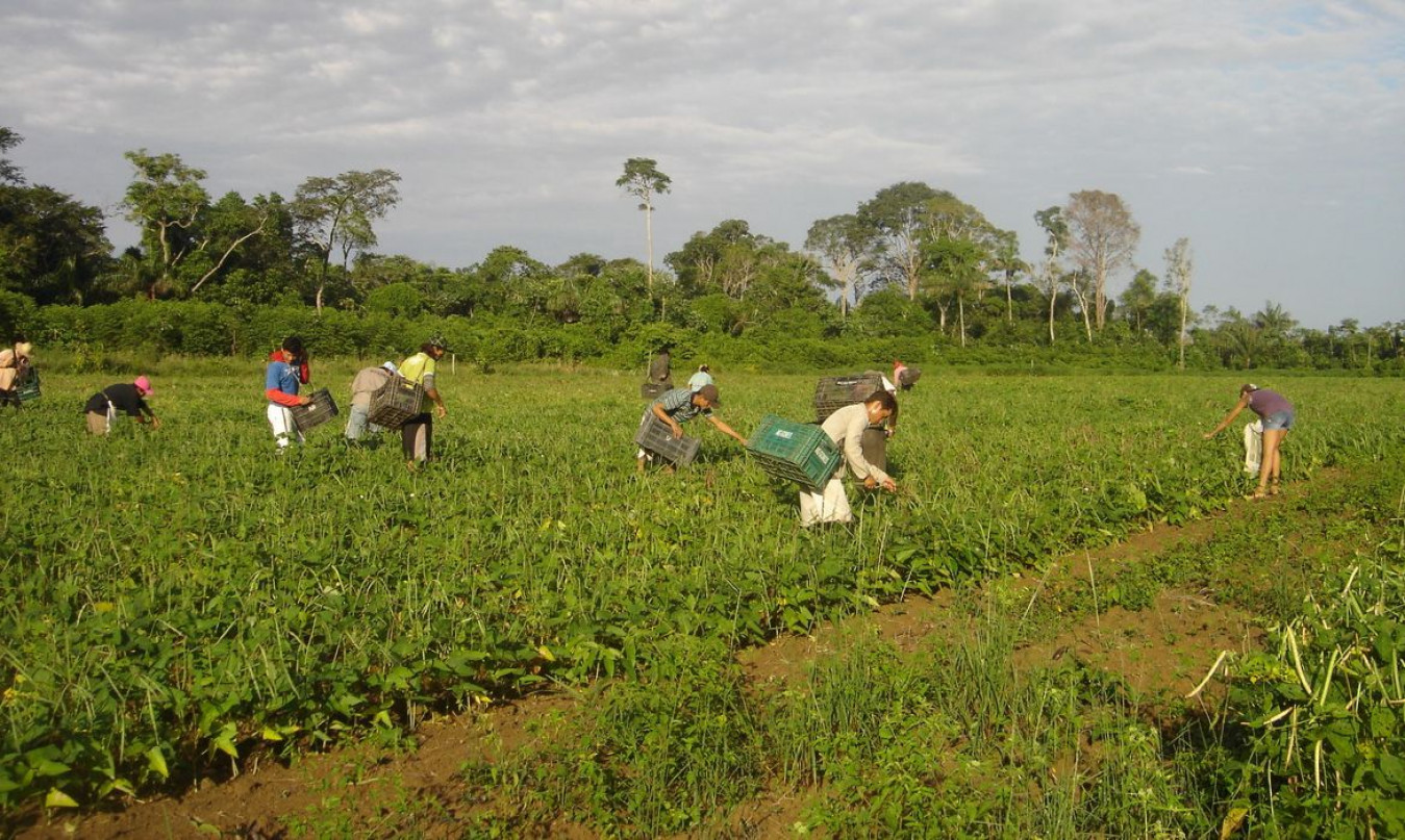 Agricultores familiares fazem colheita manual de feijão-caupi Foto: Emanuel Cavalcante/Divulgação Embrapa Amapá