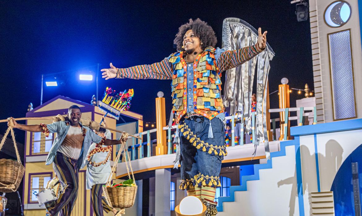 Essa é a diferença de quem nasce dentro de um território quilombola, como foi o meu caso, daqui no Quilombo dos Prazeres, no Morro da Conceição, afirma. O que ele vivencia no Baile do Menino Deus, no ciclo natalino, faz lembrar as brincadeiras dentro dos terreiros. Aqui é muito forte a brincadeira do cavalo marinho. E é com essa linguagem que eu me apresento no Baile do Menino Deus, trazendo o cavalo marinho e o coco de roda.