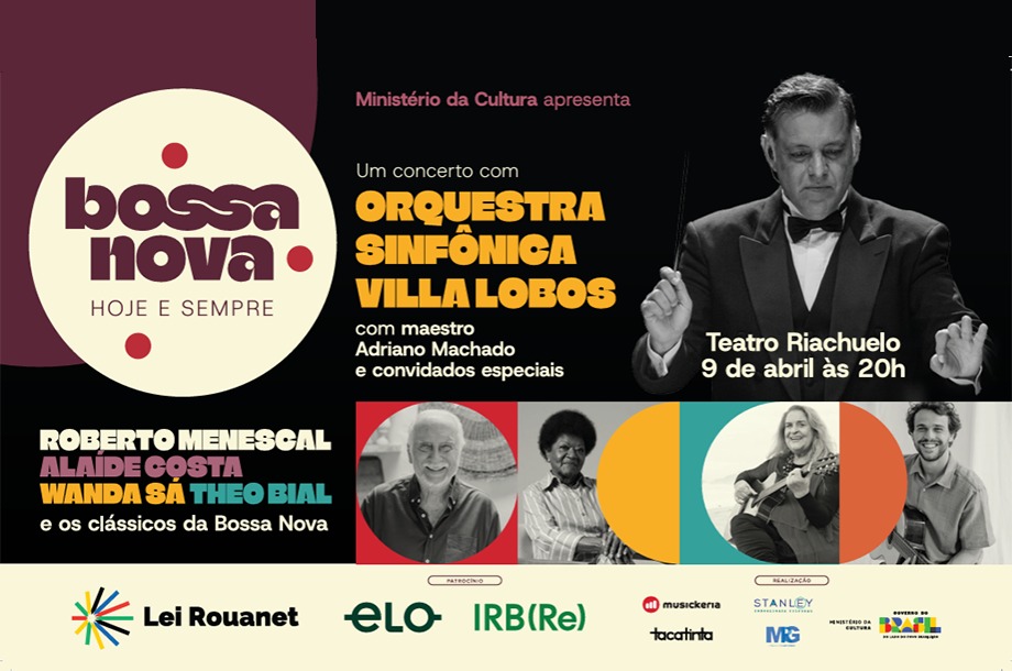 Nessa quinta-feira (9), a prestigiada Orquestra Sinfônica Villa-Lobos, sob a regência do maestro Adriano Machado, sobe ao palco do Teatro Riachuelo, no Rio de Janeiro, para um concerto inédito e único. A noite sinfônica, cheia de bossa, terá convidados especiais: Roberto Menescal, Wanda Sá, Alaíde Costa e Theo Bial darão voz a clássicos inesquecíveis, guardados na memória e na alma de diferentes gerações.