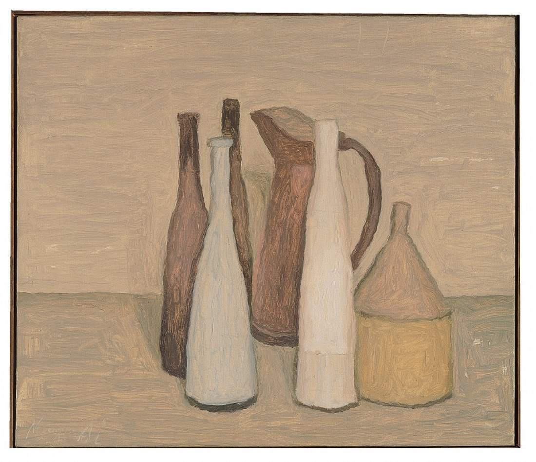 Com uma investigação profunda da cor e da luz permeando sutilezas, Giorgio Morandi se dedicou intensamente na pintura de naturezas-mortas, especialmente de conjuntos de garrafas. Seu estilo ficou marcado por uma obra que reflete sobre o tempo e as relações produzidas pelo olhar. Esse universo é representado na exposição, que tem curadoria de Gianfranco Maraniello e Alberto Salvadori, e reúne obras que vieram diretamente do Museo Morandi, localizado na cidade de Bolonha, na Itália.