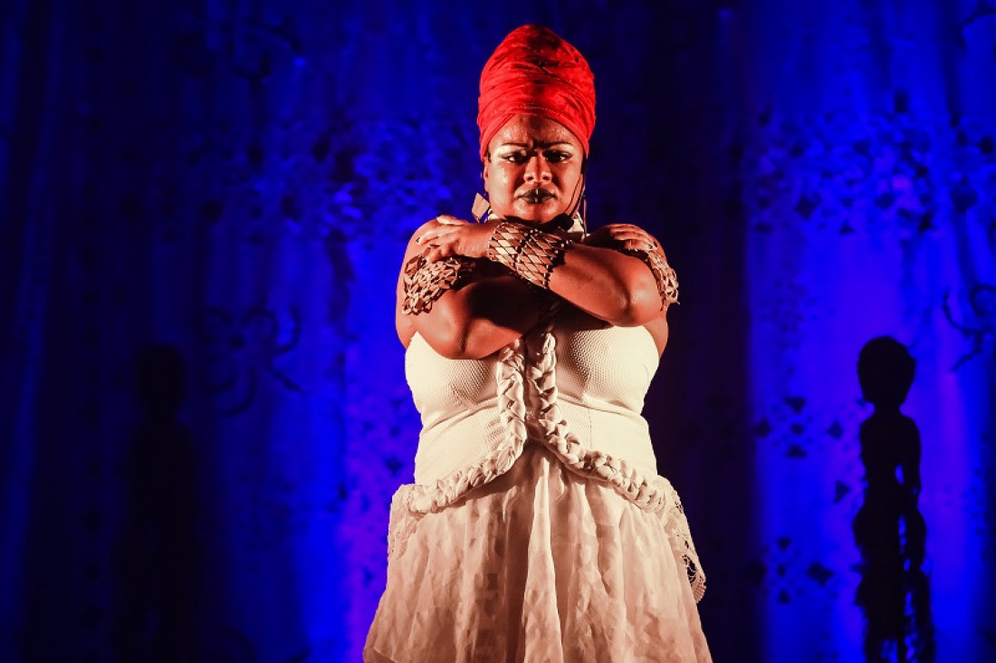 É a primeira vez que o Teatro Ruth de Souza recebe um espetáculo de outro estado. “É uma honra ocupar o palco de um espaço que leva o nome de uma das grandes pioneiras do teatro brasileiro, ainda mais sendo um espetáculo que dialoga com questões do universo feminino, da ancestralidade e da representatividade de mulheres negras”, destaca Fabíola. A peça tem dramaturgia de Onisajé, direção de Diana Ramos e direção musical de Jarbas Bittencourt. Foi premiado nas categorias de Melhor Espetáculo e Melhor Dramaturgia no 2° Festival de Teatro Online em Tempo Real do Rio de Janeiro em 2021 e indicado ao Prêmio Braskem de Teatro (BA) na categoria “Espetáculo do Interior” no mesmo ano.