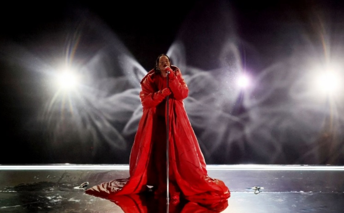 A superestrela do pop e do R&B Rihanna fez um grande retorno aos palcos neste domingo (12), flutuando bem acima do campo do Super Bowl, a final do campeonato de futebol americano, deslumbrando a multidão com uma mistura acelerada de seus sucessos e revelando que está grávida de seu segundo filho.