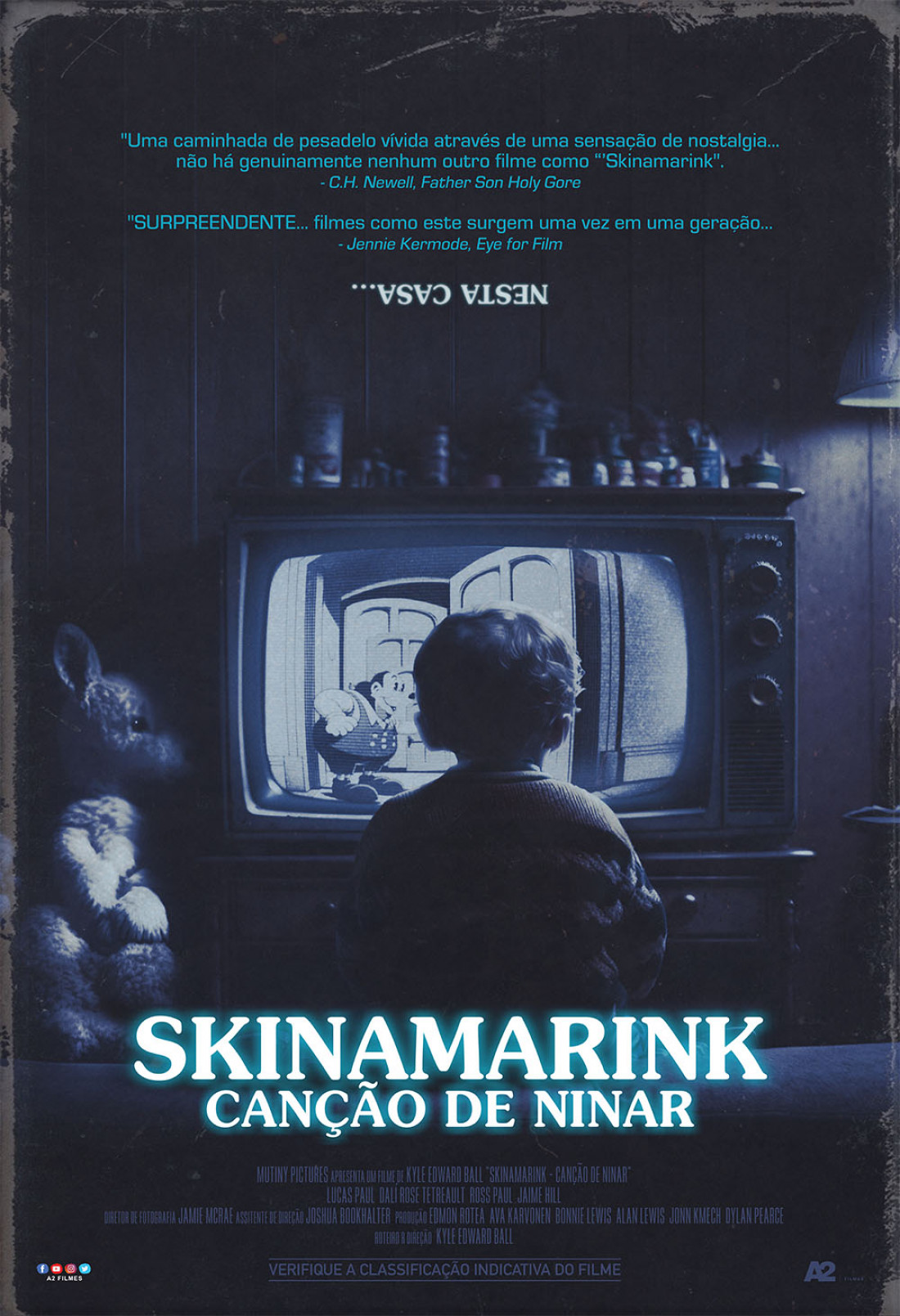 As plateias de cinema atuais, acostumadas a filmes onde sempre acontece alguma coisa a cada tantos minutos, para não dispersar a atenção de quem insiste em olhar o celular na sala escura, vão estranhar um bocado ‘Skinamarink: canção de ninar’ (‘Skinamarink’, 2022), filme de terror nada convencional. Praticamente mudo, e todo à base de ruídos e imagens que parecem captadas por câmeras de segurança, o filme prende a atenção. Ou entedia, dependendo do clima do espectador.