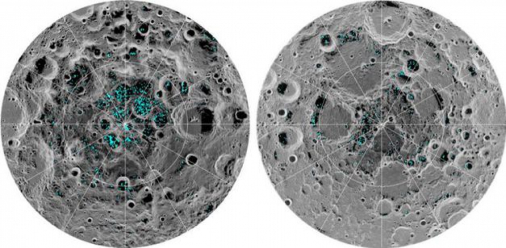 Segundo as imagens feitas pelo instrumento Moon Mineralogy Mapper (M3), o polo norte apresenta maior quantidade de gelo em comparação ao sul. Além disso, o elemento está presente em 3,5% das áreas sombreadas, onde as temperaturas atingem até 160 graus abaixo de zero.