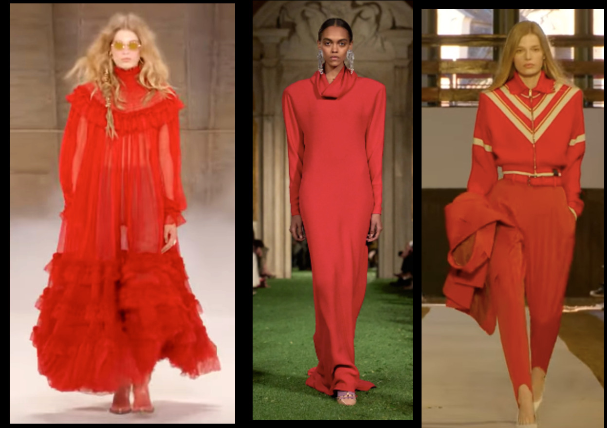 Esta visão está longe de ser de raiva: é a expressão dos criadores da moda para mostrar o efeito feminino e sensual desta cor. Nesta temporada de lançamentos ainda haveria uma referência à lembrança do Mestre Valentino Garavani. Ou uma opção para os tradicionais pretos, cinzas e marrons dos invernos.