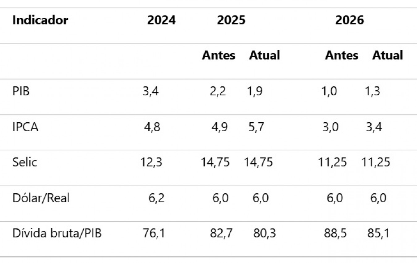 A partir da Ata do Copom, as principais instituições financeiras fizeram ajustes de cenário. A LCA Consultores, que espera alta de 0,9% para o IPCA de janeiro, que o IBGE divulga na próxima terça-feira, 11 de fevereiro, está mantendo a previsão de alta do IPCA de 2025 (feita dia 21 de janeiro) em 5,4% (era de 5,0) e a de 2026 subiu de 4,0% para 4,2%. Em função da maior inflação, a consultoria considera que a Selic vai subir até 15% ao ano na reunião do Copom de 18 de junho. “Esse aperto draconiano de condições monetárias, em conjunto com as persistentes incertezas no ambiente internacional e no cenário fiscal doméstico (...) tem começado a impactar o desempenho da economia”. Por isso, a LCA reduziu a projeção para o crescimento do PIB em 2025 de 2,3% para 1,8%, ao passo que a projeção para 2026 recuou de 1,7% para 1,6%.
