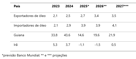 Com exceção da Guiana, que vem tendo um aumento vertiginoso do seu PIB, com a crescente produção de petróleo por companhias estrangeiras (o que animou o Brasil a prospectar as perspectivas da margem equatorial a 180 km da conta do Amapá, e a 500 km da foz do Rio Amazonas, e despertou a cobiça de Donald Trump, que quer se assenhorar das maiores reservas do mundo da Venezuela - 300,6 bilhões de barris), os países exportadores de petróleo vêm crescendo menos do que os importadores, numa prova de que o que vale é o conhecimento e a tecnologia, que impulsionam a transição energética.
