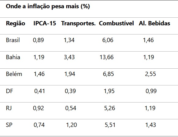 Mas a Bahia, onde a Acelen meio que segue os ditames do PPI, teve a segunda maior taxa mensal do IPCA-15. Contra a média nacional de 0,89%, a maior inflação foi em Belém (1,46%), devido às altas de 12,79% do açaí e de 9,33% da gasolina. Na média nacional os preços dos combustíveis subiram 6,06%, com alta de 6,23% na gasolina e de 16% no diesel – o etanol subiu 2,17% e o GNV recuou 1,55%. Na Bahia, contudo, os preços dos combustíveis subiram 13,66%. Bem mais que no RJ, São Paulo e Brasília.