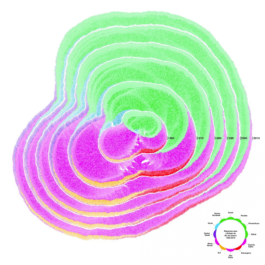 “A maioria já era conhecida, porque pesquiso essa área há bastante tempo, então, como sabia que os alemães tinham trabalhos feitos sobre bicicletas compartilhadas, pedi que fizessem pra gente aqui, que tivesse essa referência. Do mesmo modo, com o trabalho do Pedro Miguel Cruz, pedi para fazer algo sobre migrações, como ele havia feito para os Estados Unidos. Aqui para o Rio, a gente vê que, em um período longo, desde o século XIX, tem épocas em que vinha mais gente do Nordeste para o Rio; em outros tempos, de outros lugares”.