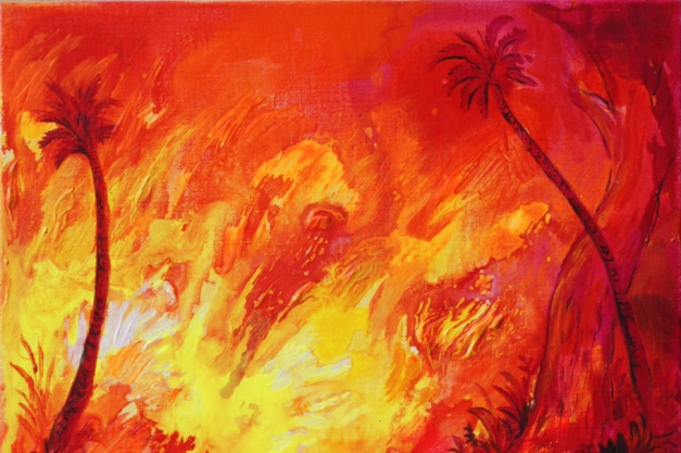 Uma das obras mais recentes em exposição é a tela inédita “Brasas”, que integra a série “Queimadas” do pintor Pedro Varela. Suas imagens de devastação de vegetações são pintadas em acrílico sobre linho. O último trabalho junta-se aos quadros restantes criando um conjunto inquietante sob a ótica do expectador.