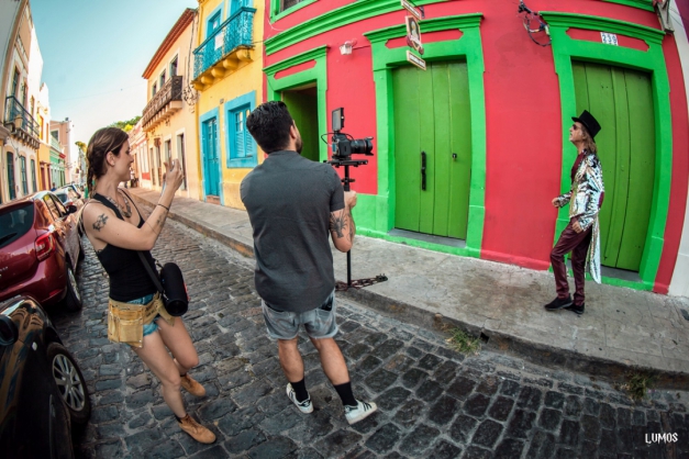 Por cada cidade que passaram, Diana e Leo contaram com colaboradores locais. Para filmar com Alceu, eles tiveram a ajuda de dois profissionais da equipe de produção do artista, amigos e dos filmmakers independentes do Lumos Estúdio. "Convidamos, por exemplo, o Gildson Mendes, irmão do jornalista e escritor Gil, que é nosso amigo em São Paulo. Ele mora na cidade e tem o Lumos Estúdio, que fez as fotos do making of. No dia da filmagem, ele segurou até rebatedor!", conta Diana. "Como acumulamos funções, temos uma dinâmica com a qual estamos bem acostumados. Primeiro, percorremos o caminho ou estudamos a locação, pensando no enquadramento. Depois, vamos com o artista sem câmera e, no terceiro momento, com a câmera", explica Leo.
