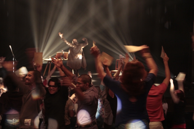 Brincando por já ter "celebrado mais missa do que muito padre na paróquia", durante os três anos de montagem, com 300 apresentações e 45 mil espectadores, Eduardo Wotzik, além de costurar o texto final e dirigir o espetáculo, encarna seu protagonista, "um arauto clariciano, que traz a mensagem". Ele divide o palco com Cristina Rudolph e Natally do Ó, "as duas beatas claricianas". Neste culto cênico, "elas narram suas experiências e contam como foi que se tornaram claricianas", explica o diretor.