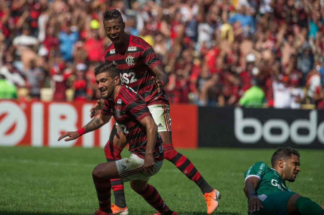 Após o empate, as equipes se alternaram em lances ofensivos. O Mais Querido chegou perto do gol do time goiano em mais duas oportunidades com Gabriel e Bruno Henrique. Mas foi no fim da primeira etapa que o Fla desencantou e marcou três gols em sequência: Bruno Henrique para colocar o rubro-negro na frente e Arrascaeta por duas vezes.