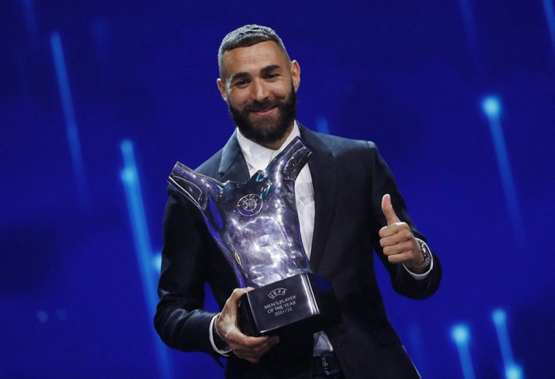O atacante do Real Madrid Karim Benzema foi eleito Jogador do Ano da Uefa, e Carlo Ancelotti recebeu as honras de treinador, depois que eles levaram o clube a conquistar o 14º título da Liga dos Campeões na temporada passada.