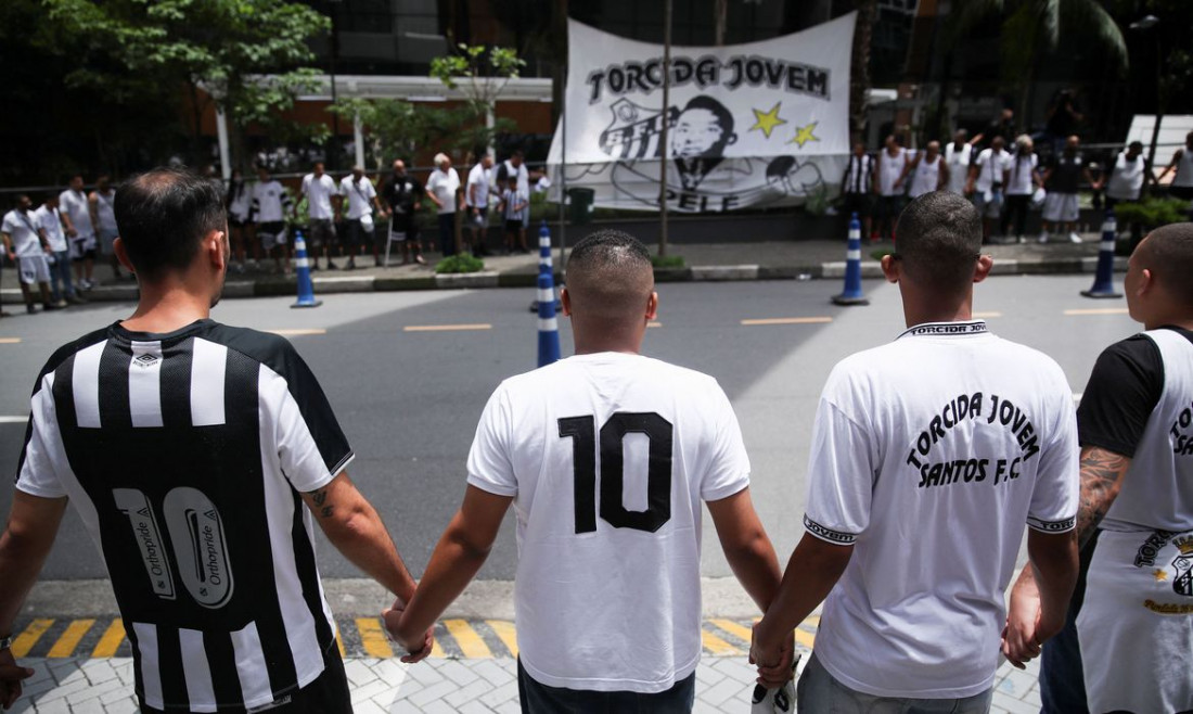 Torcedores foram neste domingo (4) à porta do Hospital Albert Einstein, no Morumbi, zona oeste paulistana, se solidarizar com o ex-jogador de futebol Edson Arantes do Nascimento, o rei Pelé. A vigília foi convocada pela torcida jovem do Santos, time em que Pelé iniciou a carreira. O grupo levou uma bandeira com uma imagem do rei quando jovem e colou mensagens de apoio na grade no jardim do hospital.