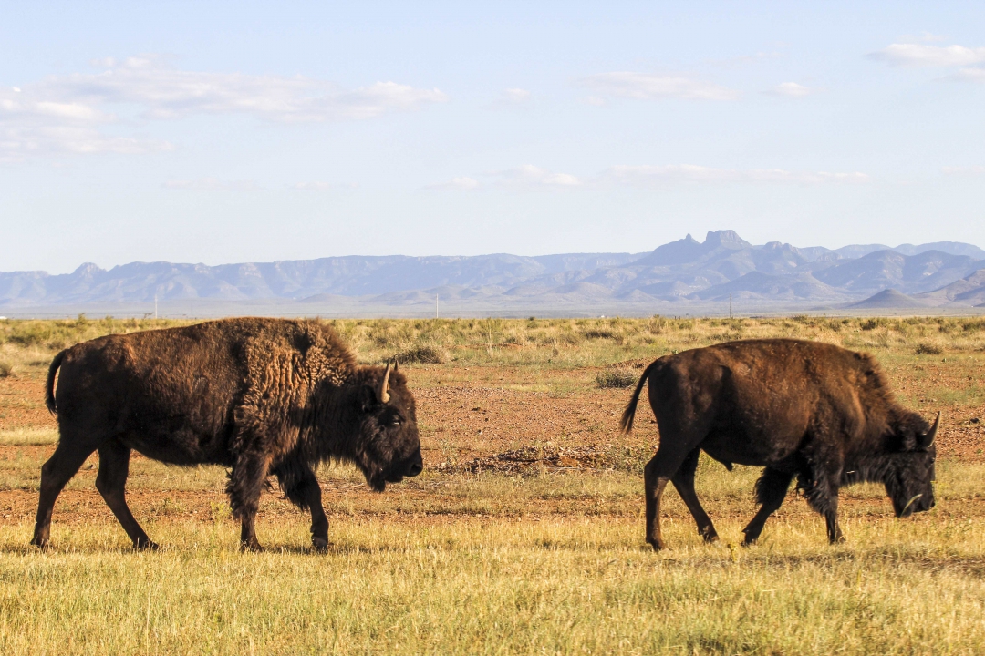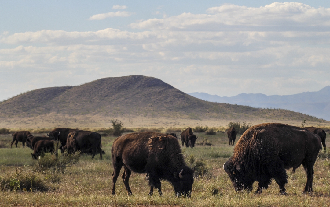 O búfalo americano geneticamente puro, que pode pesar até uma tonelada e atingir 1,70 m de altura em sua corcunda, sobrevive no norte do México desafiando as barreiras de fronteira com os Estados Unidos que os impedem de ter o livre trânsito em seu habitat natural.