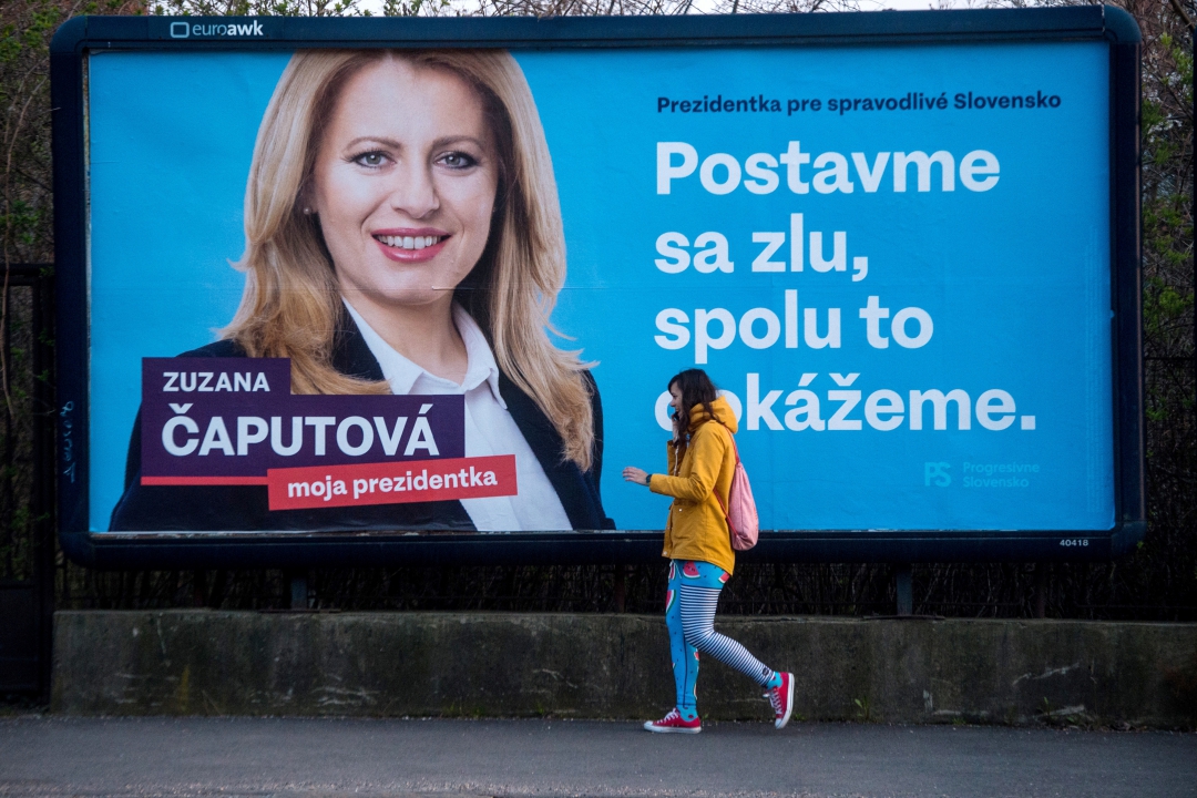 No primeiro turno, Caputova, cujo slogan de campanha é "Vamos lutar contra o mal", obteve 40,53% dos votos, contra 18,66% para seu adversário.