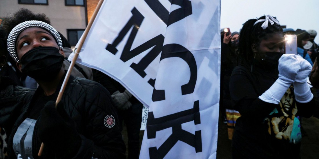 Manifestantes na frente do Departamento de Polícia do Brooklyn Center, dias depois que Daunte Wright foi baleado e morto por um policial, no Brooklyn Center, Minnesota Reuters / Leah Millis