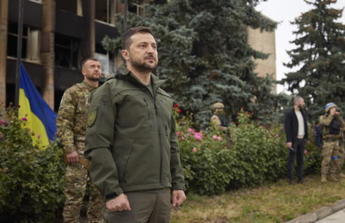 Zelensky durante uma visita em Izyum Foto: Epa