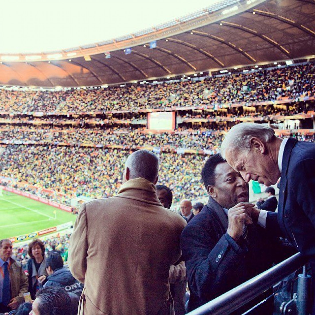 Pelé e Biden em um jogo de futebol Reprodução/Twitter