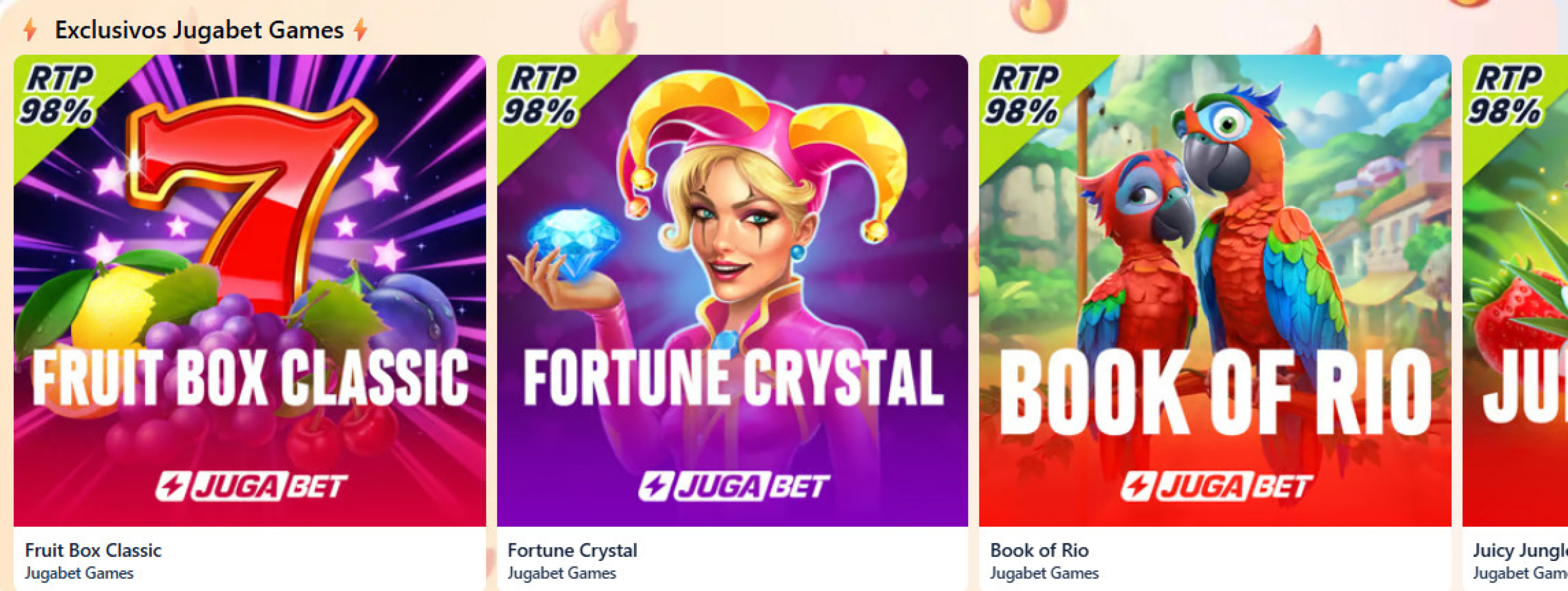 Juegos como Fruit Box Classic, Book of Rio o Five Gods, disponibles solo en la categoría Jugabet Games.