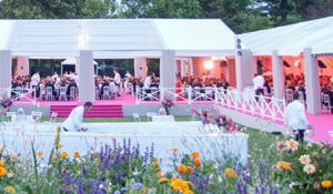 Detalhe do stand de Bernard Magrez e de seus vinhos do Château Pape Clément. Foto Philippe Labeguerie/Vinexpo.