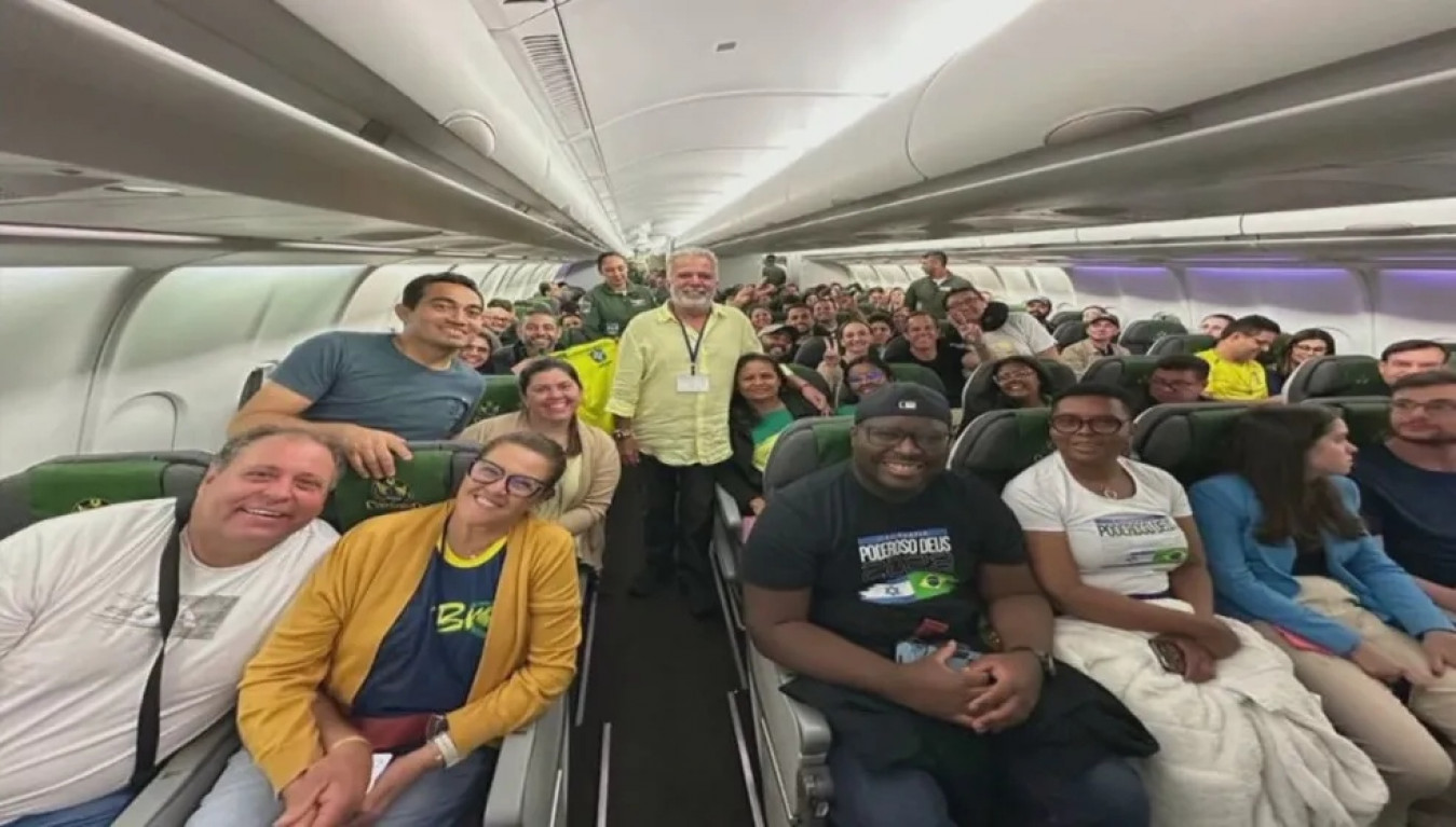 O grupo estava hospedado ao lado de um hotel militar, em Jerusalém, e não conseguia passagem para retornar ao Brasil. Mirian registrou em vídeo o momento em que os brasileiros, cantando o hino nacional, estão em fila entrando na aeronave (veja acima).