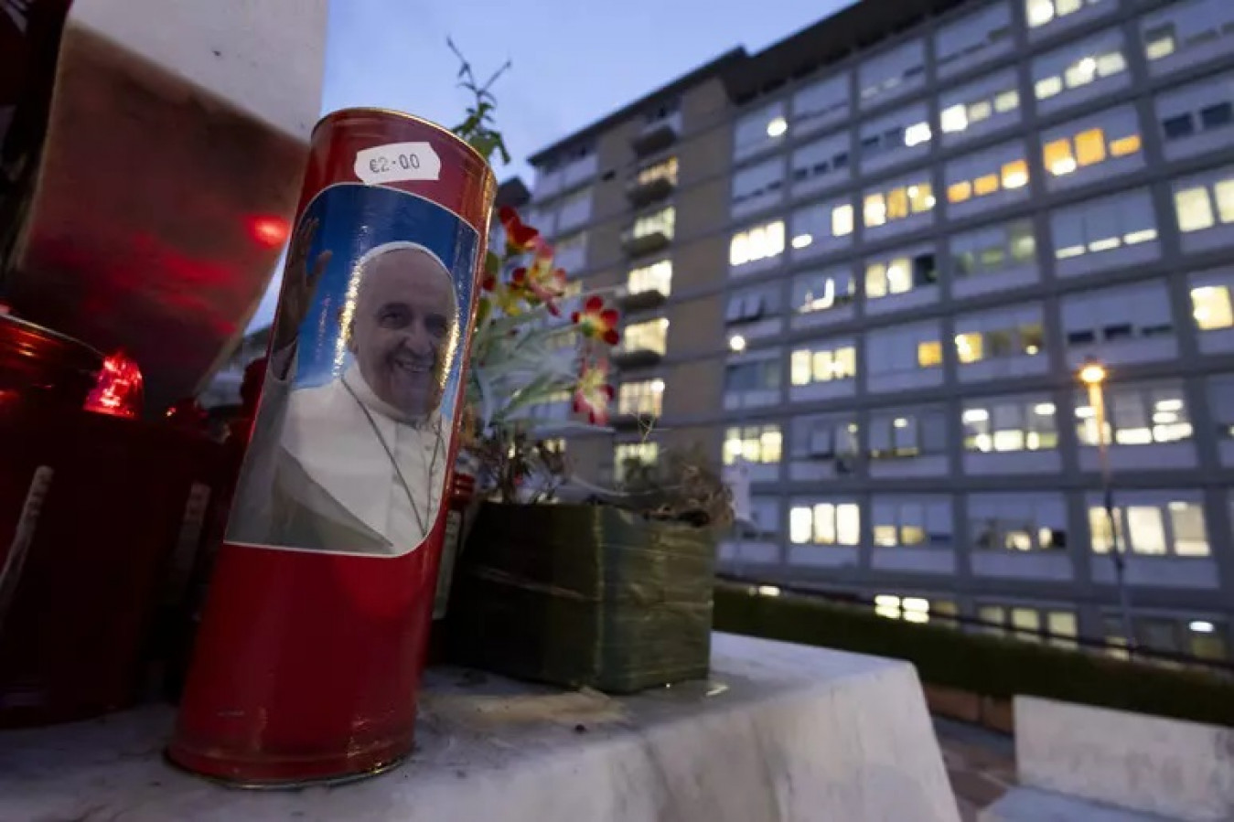 Velas para o papa Francisco diante do Hospital Agostino Gemelli Foto: Ansa