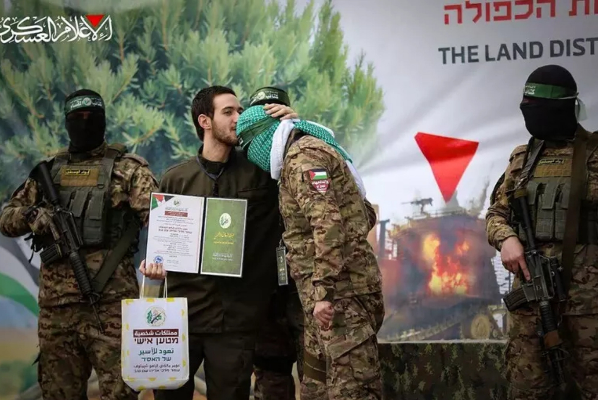 Apesar dos protestos de Israel, a milícia palestina repetiu o ritual de expor os sequestrados em palcos ao lado de combatentes armados e diante de multidões antes de entregá-los à Cruz Vermelha.