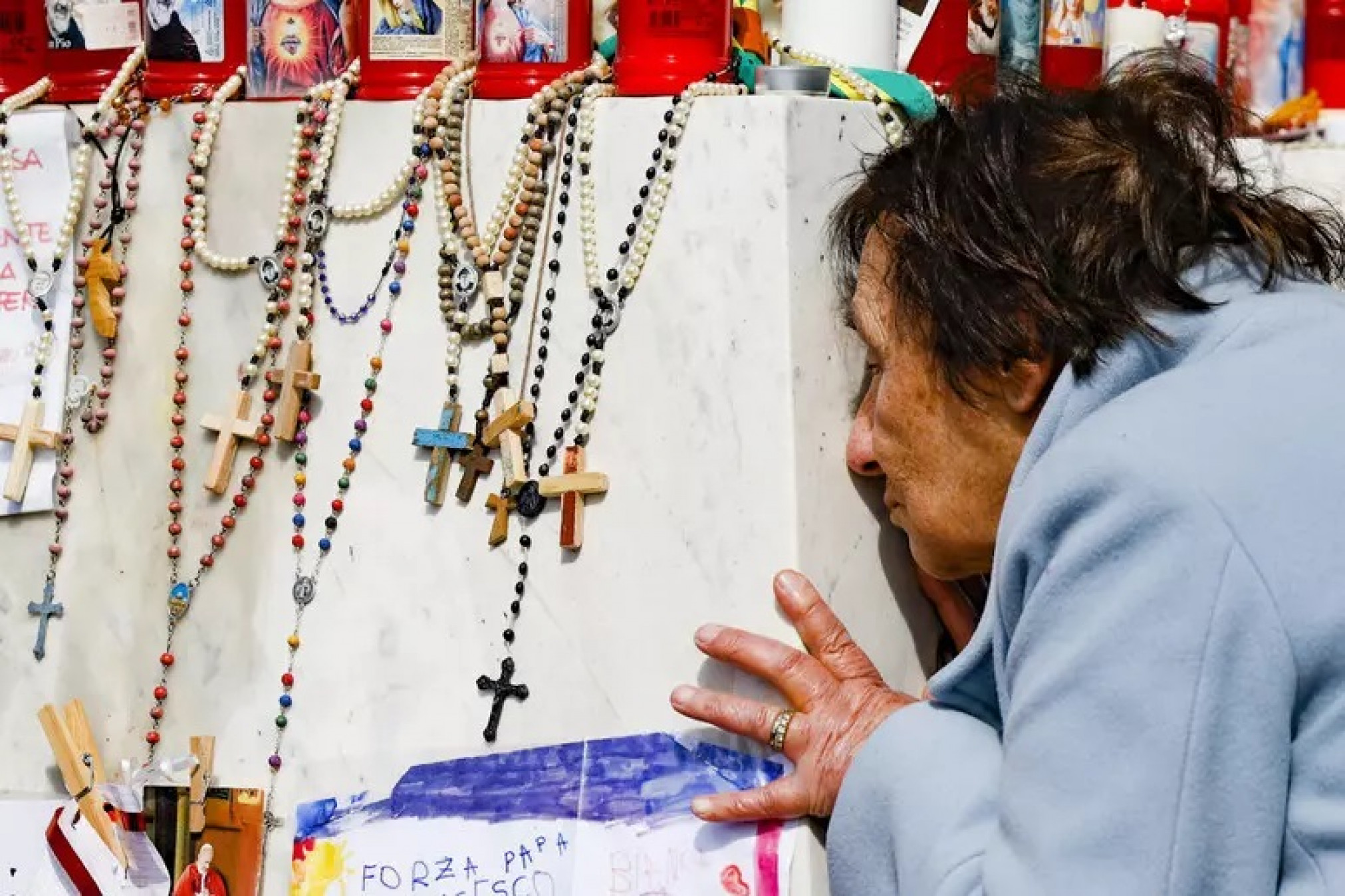 Fiel ao lado de rosários em devoção a papa Francisco Foto: Ansa