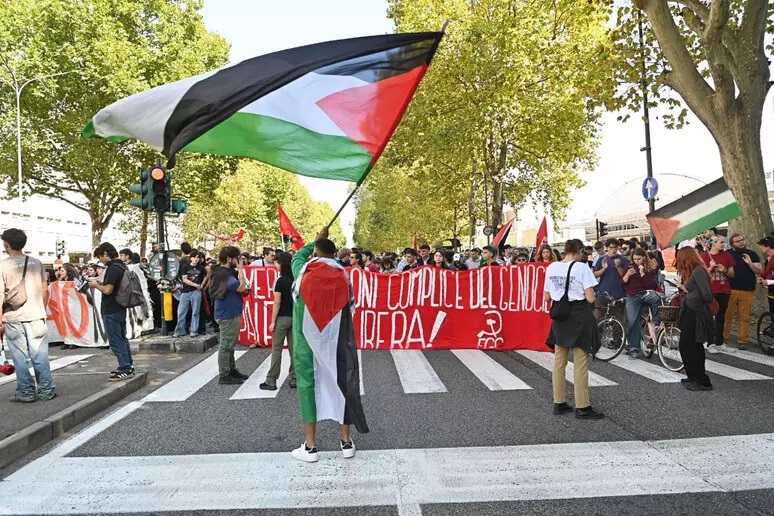 Manifestação estudantil pró-Gaza em Turim, na Itália Foto: Ansa