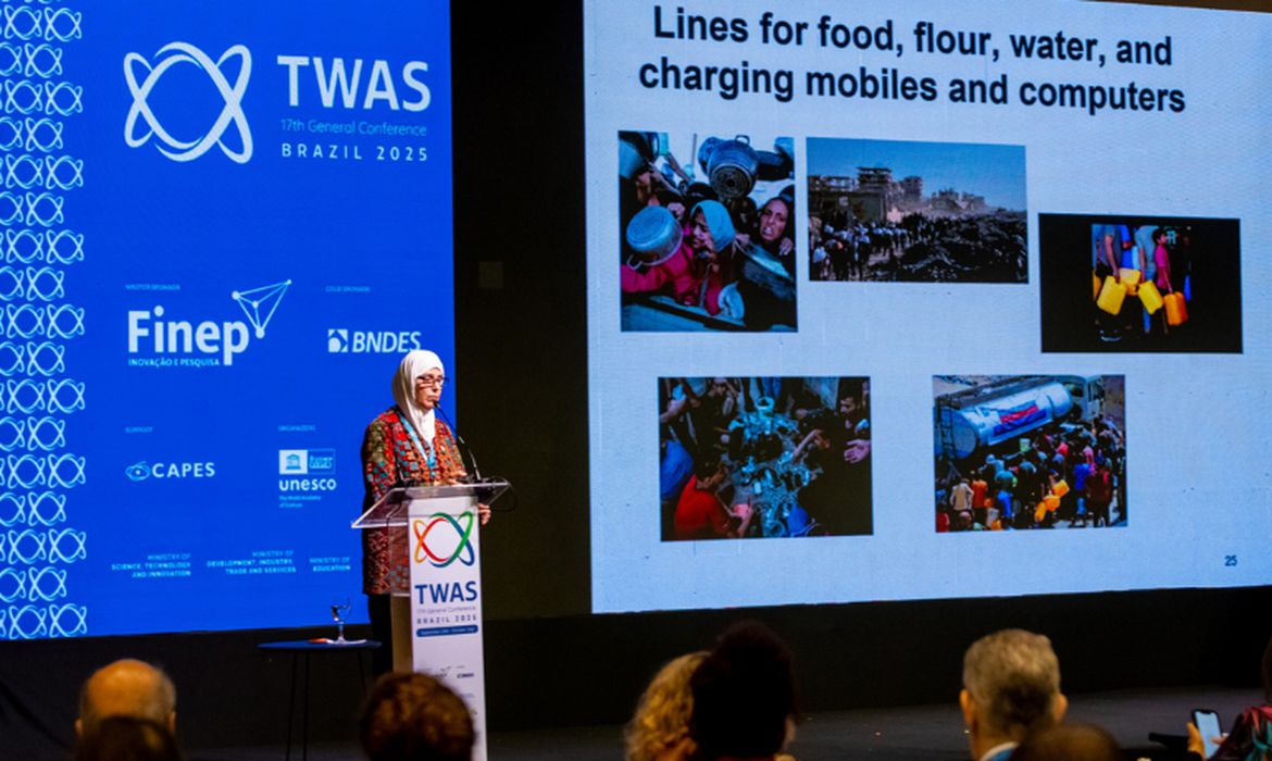 Por Tâmara Freire - Em meio à crise humanitária e ao cenário de destruição em Gaza, professores universitários ainda persistem, gravando aulas para que os alunos assistam de maneira remota e deixando conteúdos anotados para eles em pequenas bibliotecas locais. É o que revelou a professora titular dos departamentos de Engenharia Elétrica e Sistemas Inteligentes da Universidade Islâmica de Gaza, Hala El-Khoondar, em uma palestra durante a 17ª Conferência Geral da Academia Mundial de Ciências, que terminou na quinta-feira (2), no Rio de Janeiro.