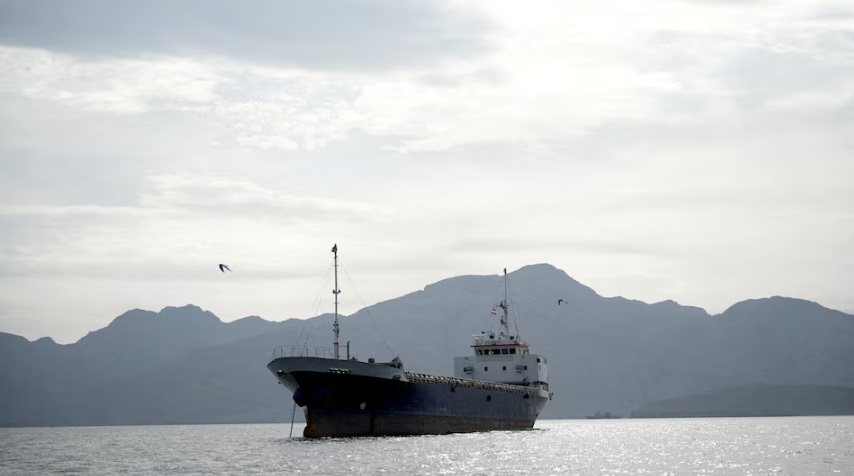 Uma embarcação é vista no Estreito de Ormuz, na costa da província de Musandam, em Omã, que está bloqueado pelos Estados Unidos Foto: Reuters