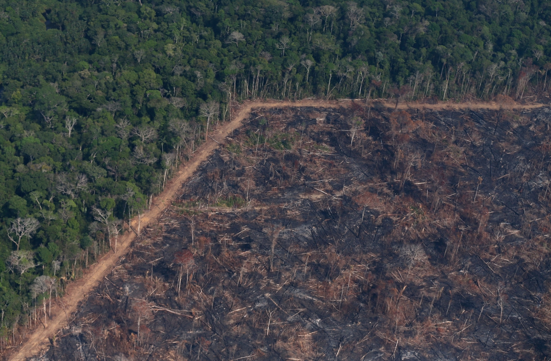 Vista aérea de trecho queimado da floresta amazônica, desmatado por madeireiros e fazendeiros perto de Porto Velho