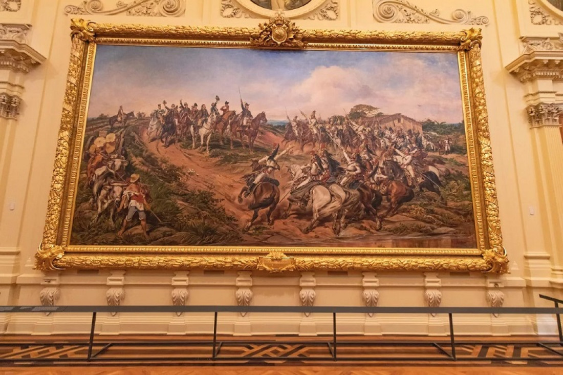 Quadro 'Independência ou Morte', de Pedro Américo, que caracteriza o grito de Dom Pedro às margens do Ipiranga, exposto no Salão Nobre do Museu do Ipiranga em São Paulo Foto: Folhapress / Yuri Murakami