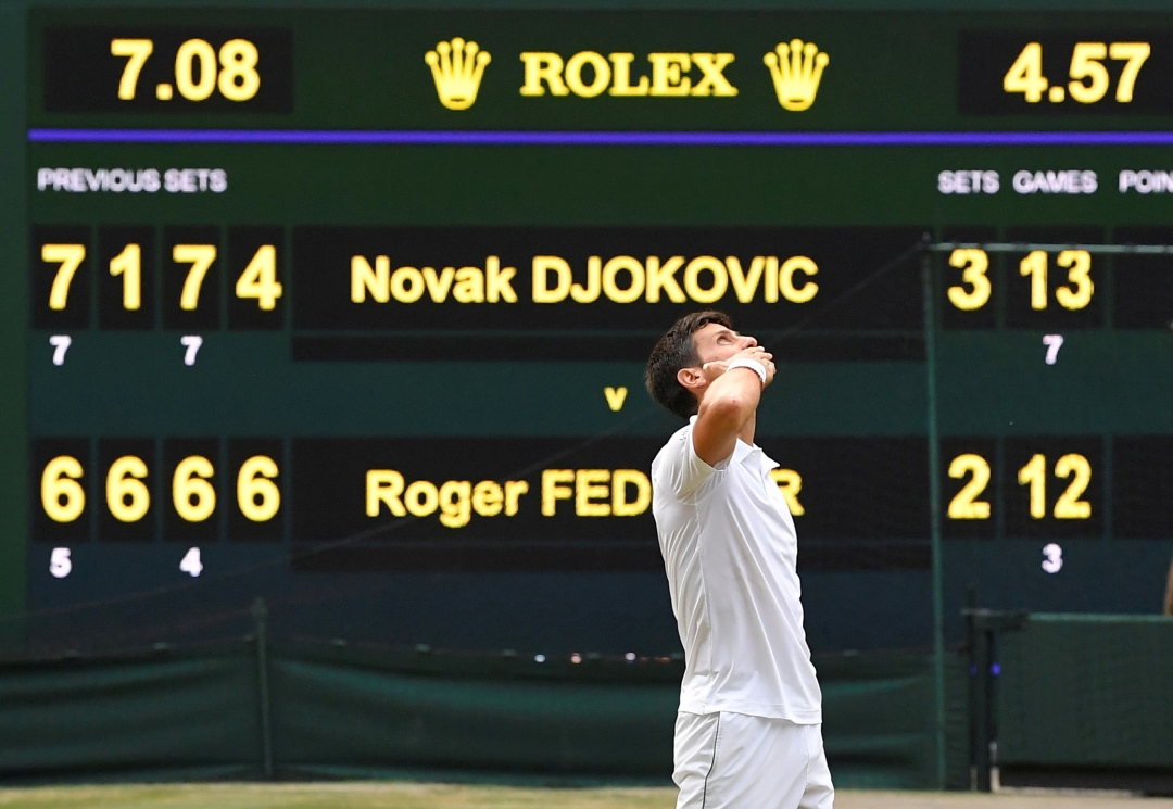 Em final épica de quase cinco horas de duração, o sérvio Novak Djokovic venceu, no tie break, o suiíço Roger Federer e conquistou seu quinto título na grama sagrada de Wimbledon. Parciais de 7-6, 1-6, 7-6, 4-6 e 13-12