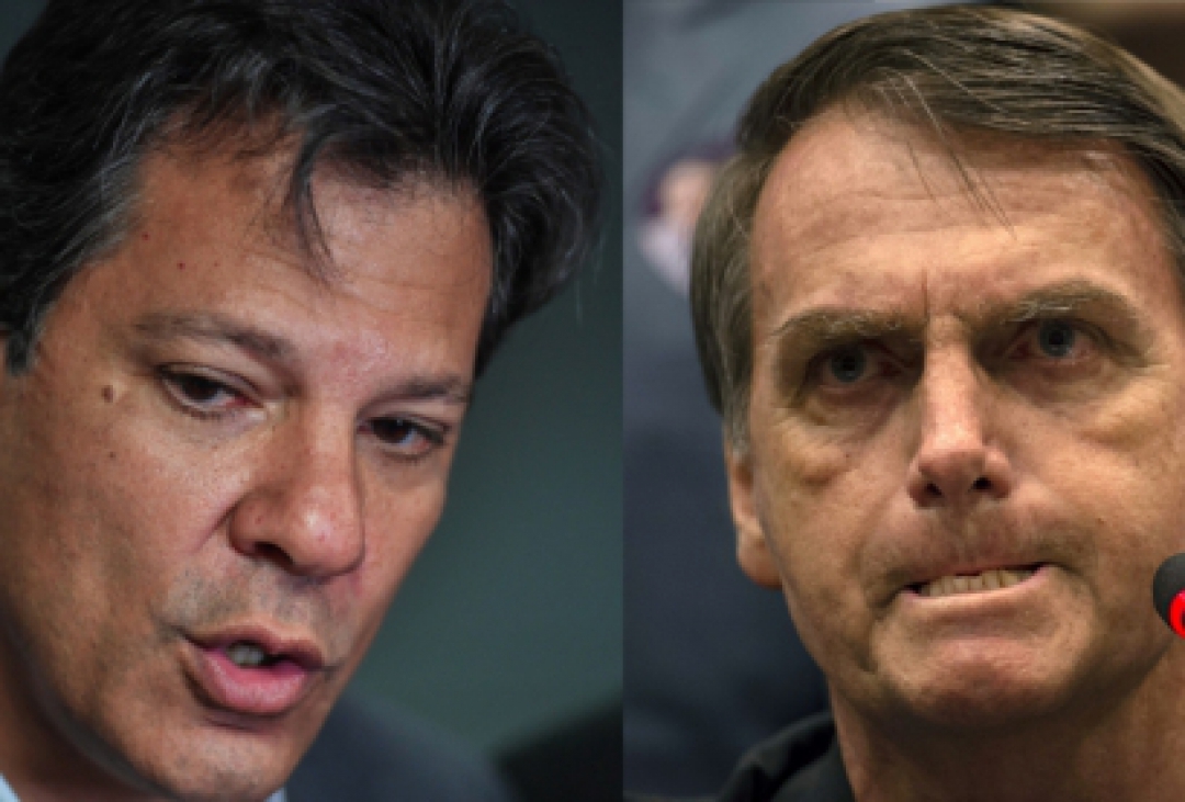 No primeiro turno das eleições 2018, Bolsonaro teve 46,03% dos votos válidos. Fernando Haddad ficou em segundo na corrida, com 29,28%.