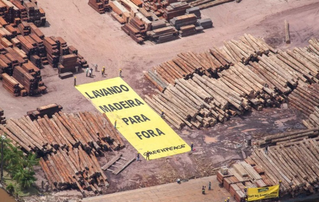 Madeireira Pampa, multada 12 vezes pelo Ibama, foi alvo de manifestação do Greenpeace em 2014