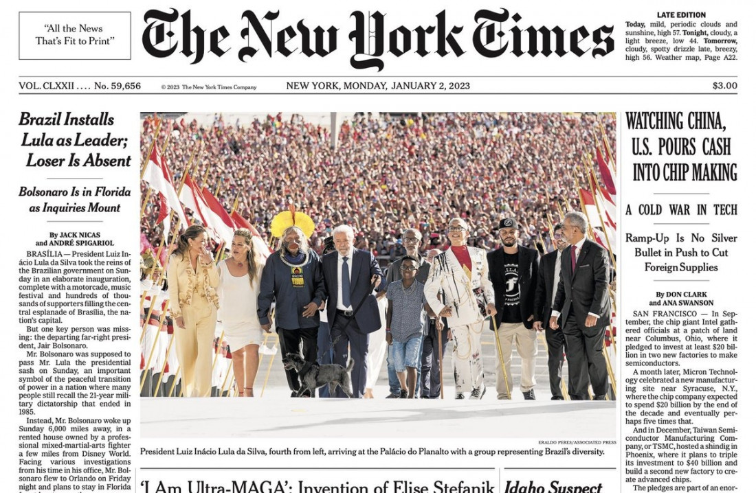 'The New York Times' publica posse do Lula na foto principal da primeira página da edição impressa