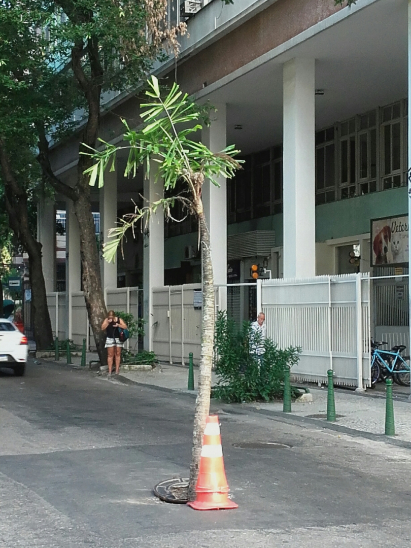 A Rua Farani, que liga a Praia de Botafogo à Rua Pinheiro Machado, em Laranjeiras, na Zona Sul, amanheceu com uma árvore no meio do caminho. É comum moradores chamarem a atenção dos motoristas aos buracos nas vias com algum objeto, em geral um resto de lixo ou até mesmo um cone. No caso, a solução encontrada à ausência do poder público foi plantar ali, no segundo quarteirão da rua, uma palmeira, sabe-se lá de onde retirada. O arbusto partiu as duas pistas ao meio, de tal forma que quem passava sequer prestava atenção à criatividade popular.