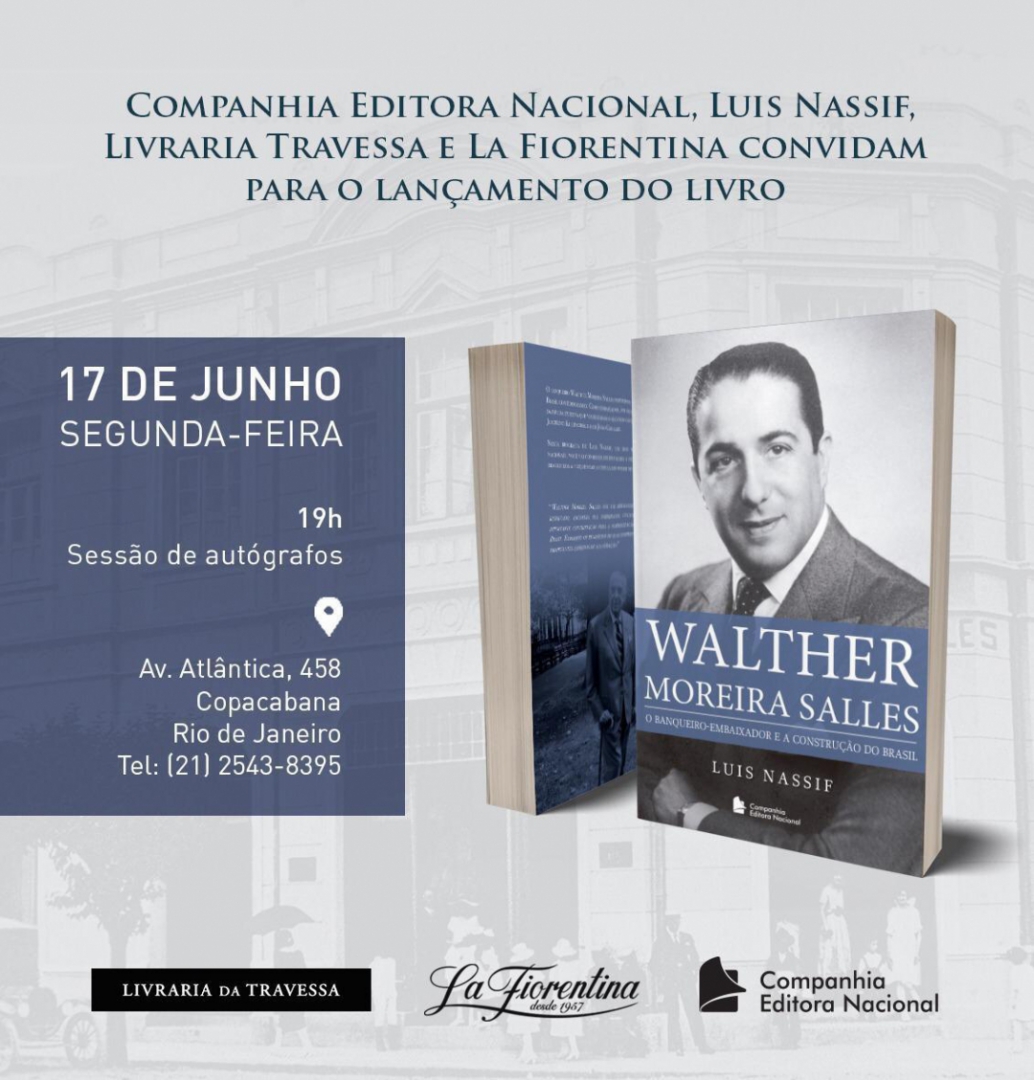 A vida de Walther Moreira Salles vai ser passada a limpo a partir das 19 horas desta segunda-feira, 17, no restaurante La Fiorentina, no Leme, quando o jornalista e escritor Luis Nassif lança o livro “Walther Moreira Salles: O Banqueiro-Embaixador e a Construção do Brasil” (Companhia Editora Nacional, 2019). Jornalista competente, conhecedor profundo da economia brasileira, Nassif traz ao leitor histórias deliciosas e inéditas.